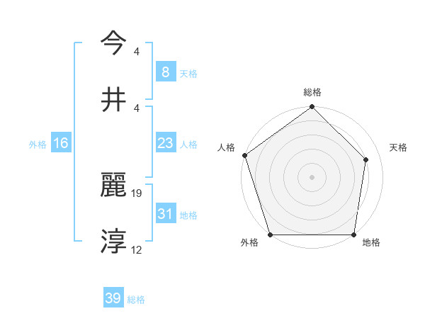 今井 麗淳さんを姓名の画数から五運を鑑定