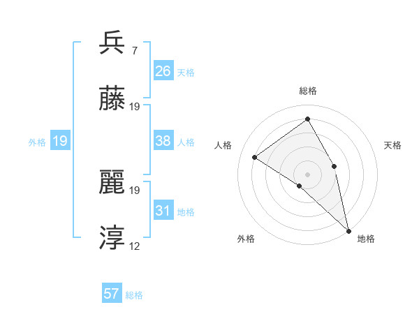 兵藤 麗淳さんの総格は57画の4点!
