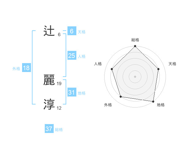 辻 麗淳さんの総格は37画の5点!