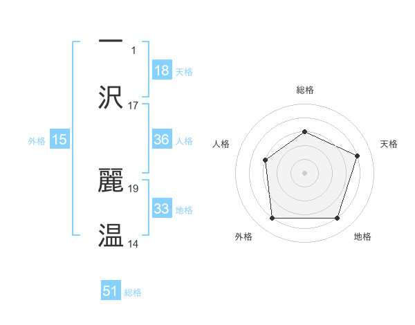 一沢 麗温さんの総格は51画の3点!