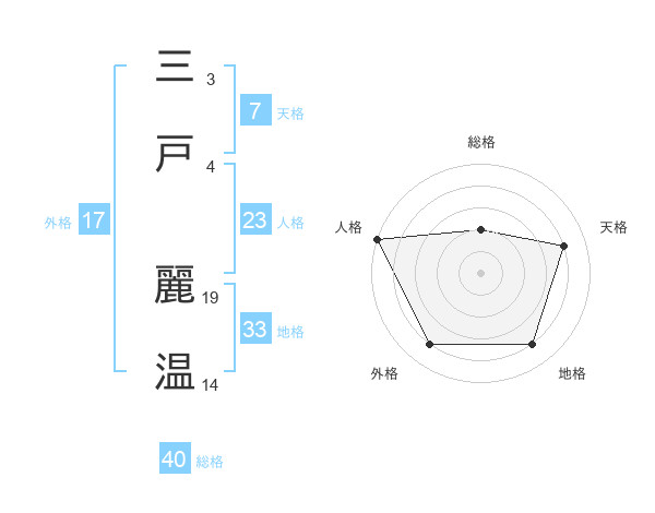 三戸 麗温さんを姓名の画数から五運を鑑定