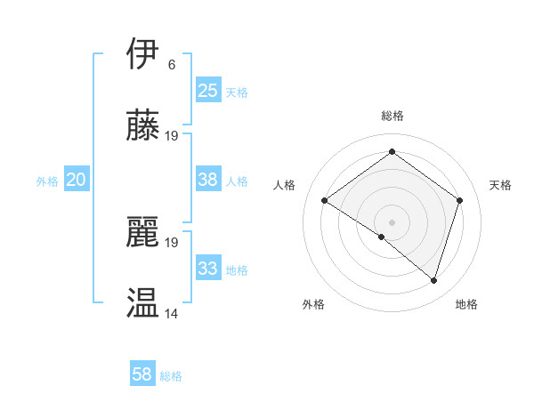 伊藤 麗温さんの総格は58画の4点!