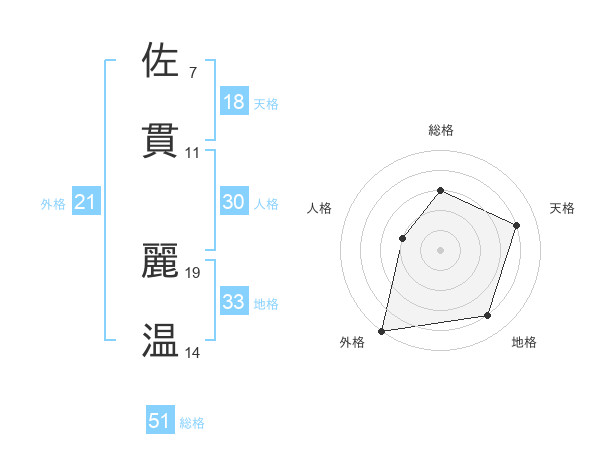 佐貫 麗温さんの総格は51画の3点!