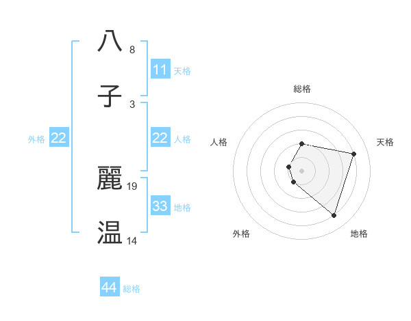 八子 麗温さんの総格は44画の2点!