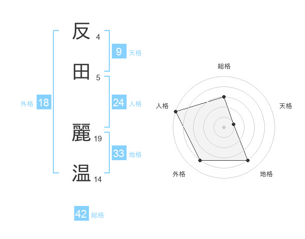 反田 麗温さんの総格は42画の3点!