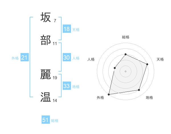坂部 麗温さんを姓名の画数から五運を鑑定