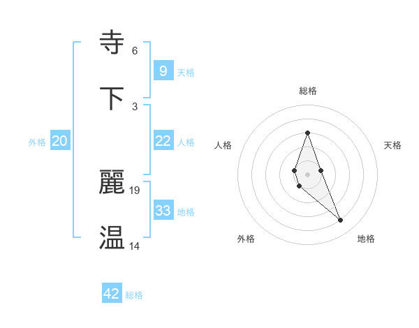 寺下 麗温さんの総格は42画の3点!