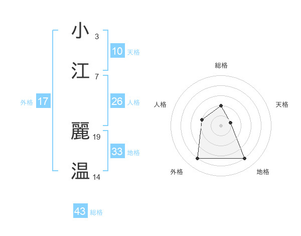 小江 麗温さんの総格は43画の2点!