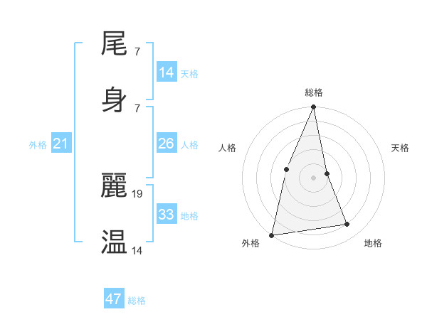 尾身 麗温さんを姓名の画数から五運を鑑定
