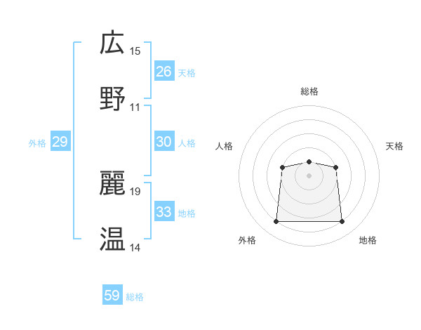 広野 麗温さんの総格は59画の1点!