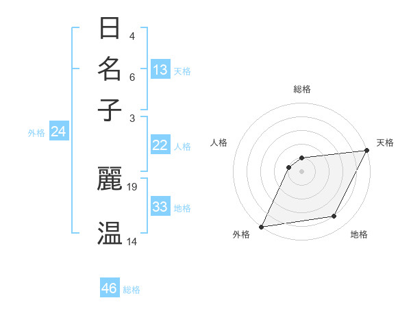 日名子 麗温さんを姓名の画数から五運を鑑定