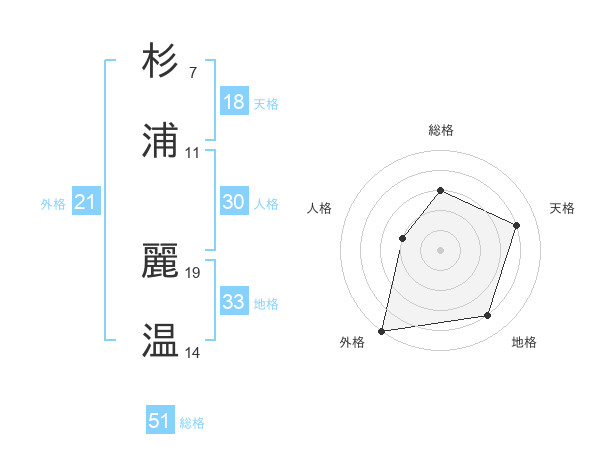 杉浦 麗温さんの総格は51画の3点!