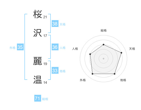 桜沢 麗温さんの総格は71画の3点!