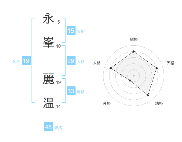 永峯 麗温さんを姓名の画数から五運を鑑定