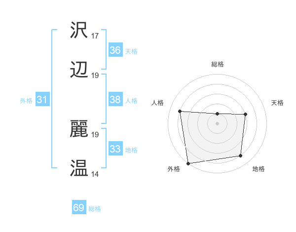 沢辺 麗温さんの人格は38画の4点!