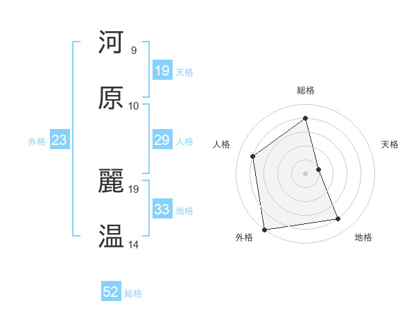 河原 麗温さんの総格は52画の4点!
