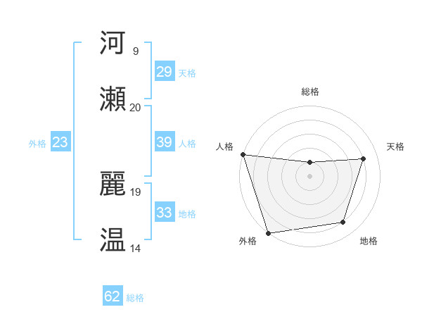 河瀬 麗温さんの総格は62画の1点!