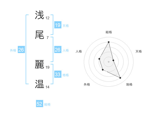 浅尾 麗温さんの総格は52画の4点!