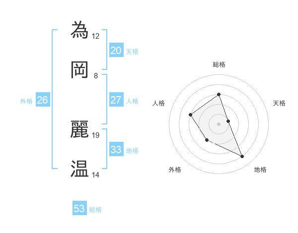 為岡 麗温さんの総格は53画の3点!