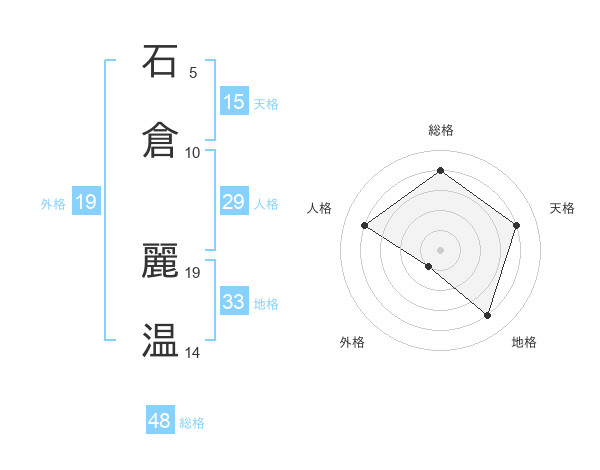 石倉 麗温さんの総格は48画の4点!