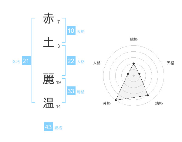 赤土 麗温さんを姓名の画数から五運を鑑定