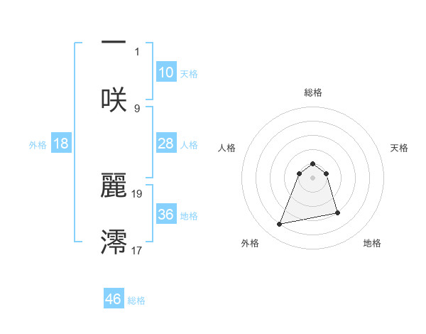 一咲 麗澪さんの総格は46画の1点!