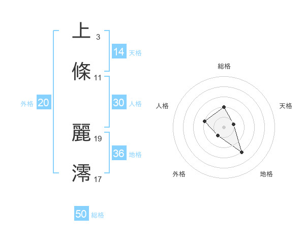 上條 麗澪さんを姓名の画数から五運を鑑定