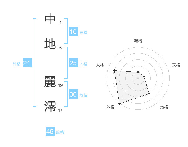 中地 麗澪さんの総格は46画の1点!