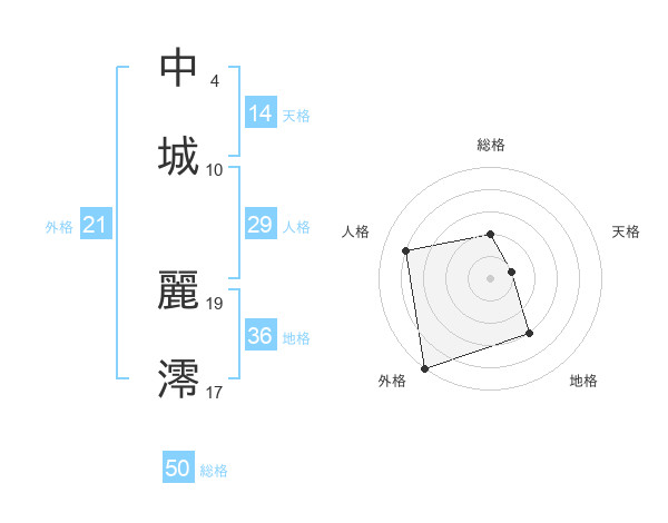 中城 麗澪さんの総格は50画の2点!