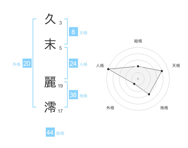 久末 麗澪さんの天格は8画の4点!