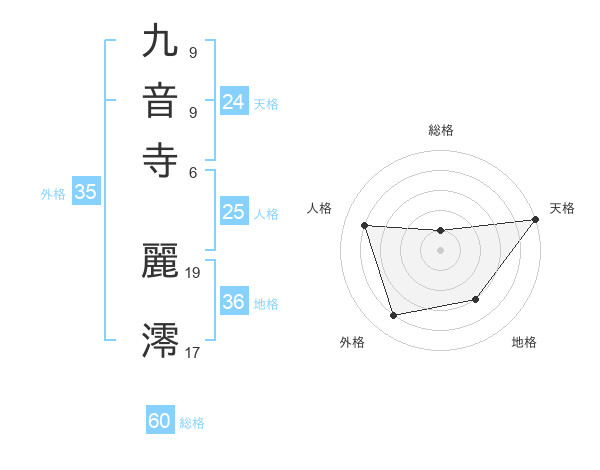 九音寺 麗澪さんの総格は60画の1点!