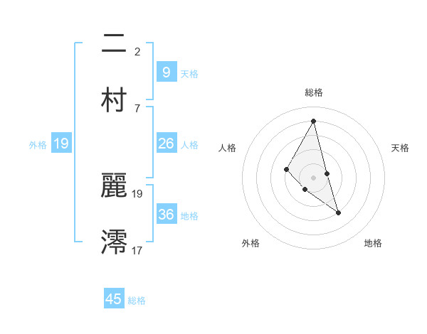 二村 麗澪さんの総格は45画の4点!