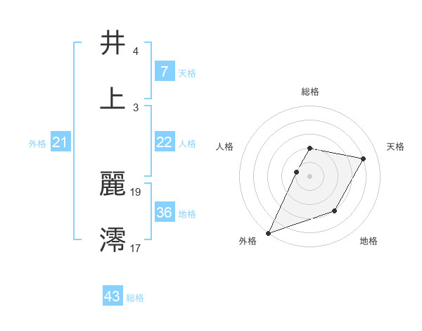 井上 麗澪さんの総格は43画の2点!