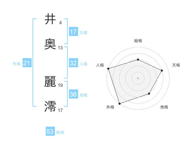 井奥 麗澪さんの天格は17画の4点!