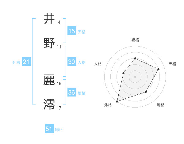 井野 麗澪さんの総格は51画の3点!