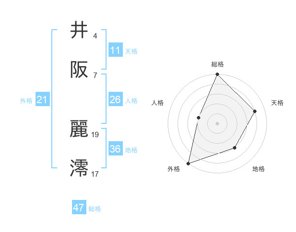 井阪 麗澪さんの総格は47画の5点!
