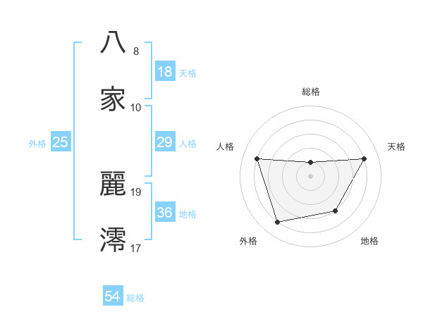 八家 麗澪さんの天格は18画の4点!