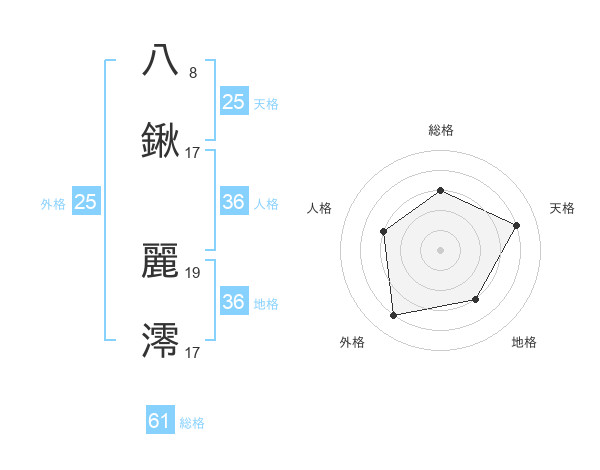 八鍬 麗澪さんの天格は25画の4点!
