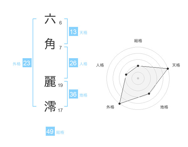 六角 麗澪さんの天格は13画の5点!