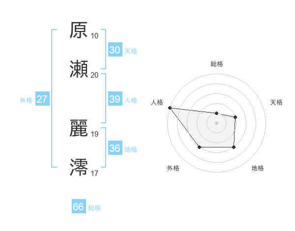 原瀬 麗澪さんの総格は66画の1点!