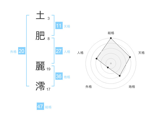 土肥 麗澪さんの総格は47画の5点!