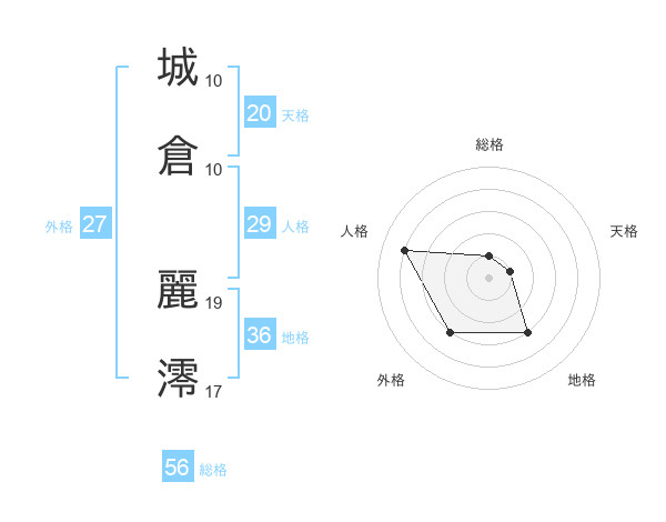 城倉 麗澪さんを姓名の画数から五運を鑑定