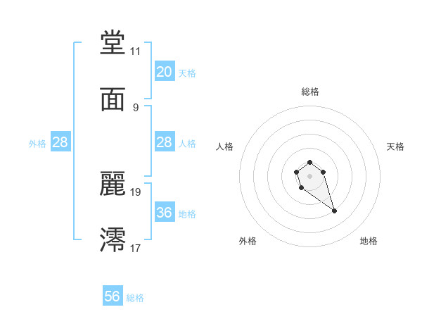 堂面 麗澪さんを姓名の画数から五運を鑑定
