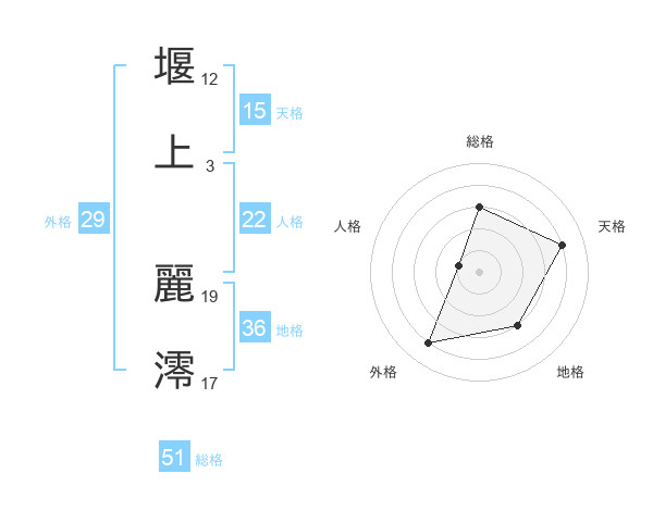 堰上 麗澪さんを姓名の画数から五運を鑑定