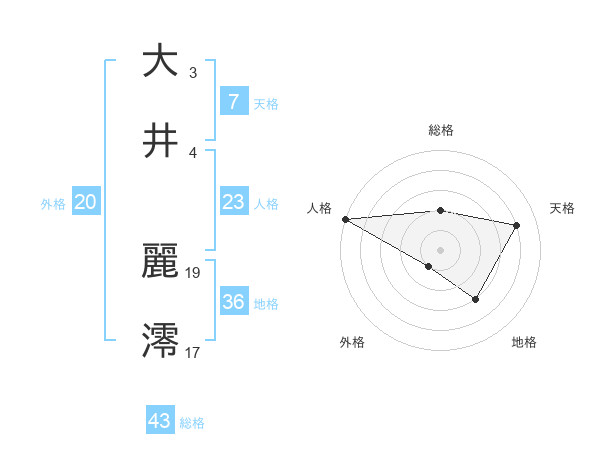大井 麗澪さんを姓名の画数から五運を鑑定