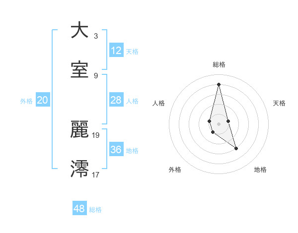大室 麗澪さんの総格は48画の4点!