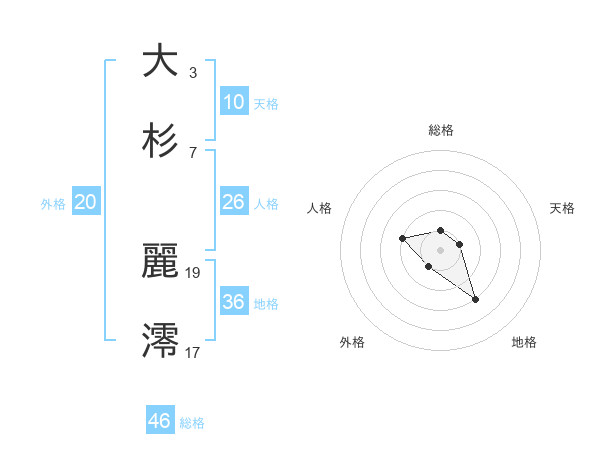 大杉 麗澪さんを姓名の画数から五運を鑑定