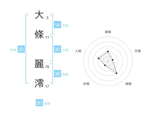 大條 麗澪さんを姓名の画数から五運を鑑定