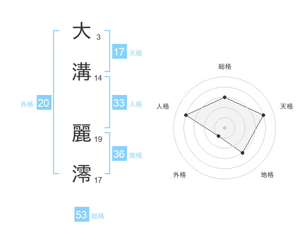 大溝 麗澪さんを姓名の画数から五運を鑑定