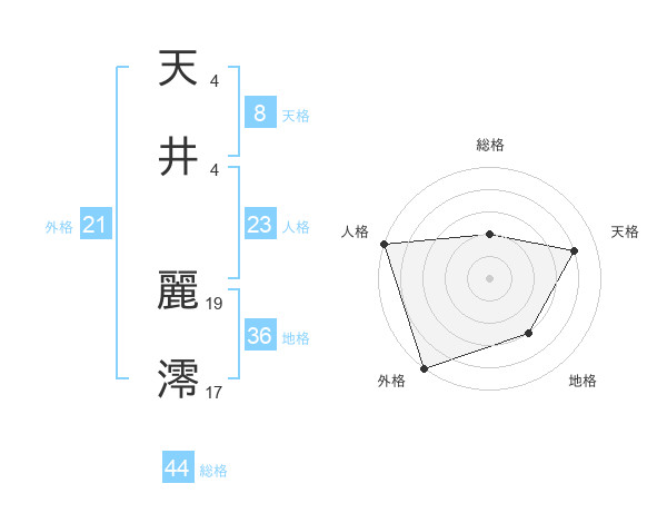 天井 麗澪さんの天格は8画の4点!